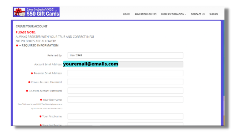 In the next sections, I’ll show you how to sign up & register as an affiliate for free, complete your offer requirements to become eligible for unlimited $50 gift cards/payments, & how to start sharing your link.